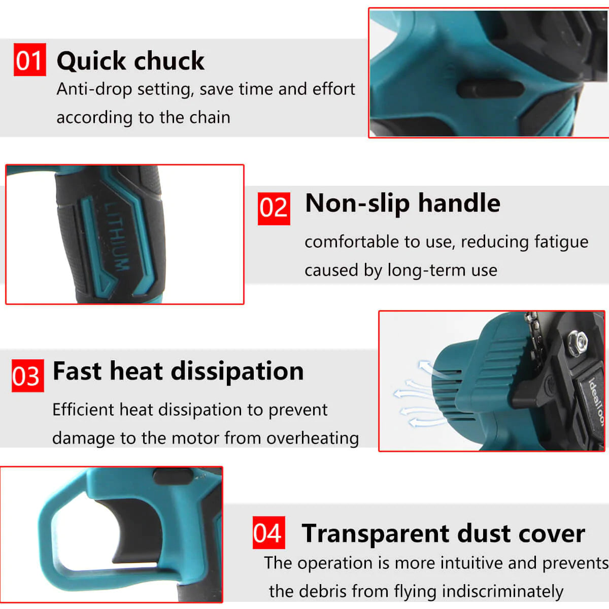 Da poda de árvores e corte de lenha à poda de galhos e projetos "faça você mesmo", esta motosserra é adequada tanto para uso profissional quanto doméstico. Seja no jardim, no quintal, na floresta ou em canteiros de obras, a motosserra sem fio iToolMax se destaca por oferecer excelente desempenho de corte em diferentes ambientes e tarefas.